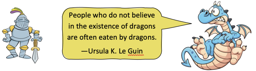 He let this thought sink in for a moment and we went on to talk it through. I learned an important lesson that day. I learned that fear is a natural part of life. It’s an integral part of the human experience. Some fears run deep and have to be addressed with a specific strategy. Other fears, like the one I’m describing here, are just as real, but they’re more superficial. With these fears you just have gut it up and fight your way through. Trust me, I know this is easier said than done. But here’s what else I know: the dragons don’t care.