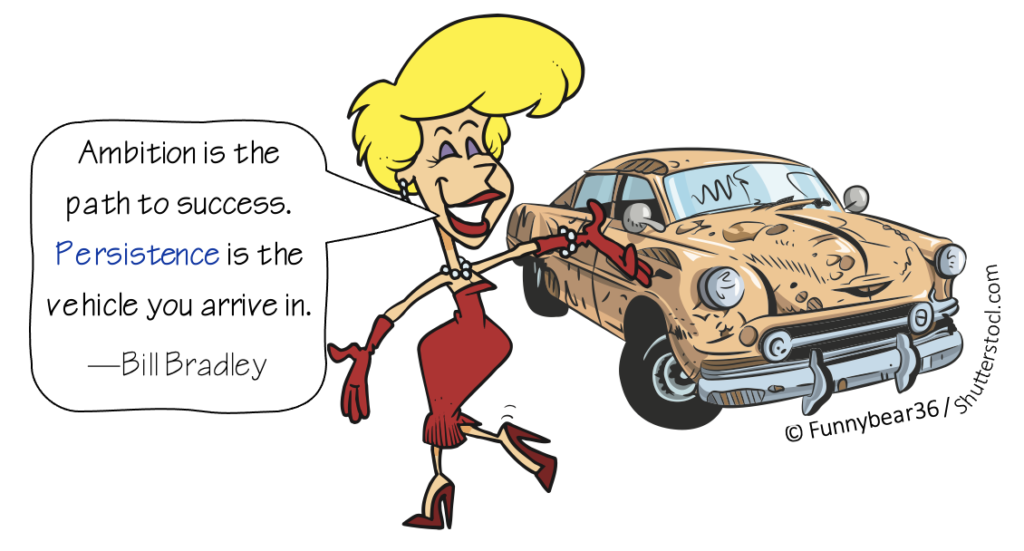 Do you have big goals? You’re gonna need a big dose of persistence to go with ‘em. You might remember your lines, but what if other people forget theirs? You know—like when they forget to say YES, and tell you NO instead? What if team members forget about their dreams and quit? What if ten or twenty in a row do that? I’ve had it happen you know. Would that bolster your resolve, or buck you out of the race? In our profession, persistence is not merely an advantage. It’s an absolute must.